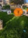 I have placed the pumpkins on boards and put up the chicken wire up with shade netting on top.