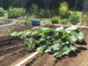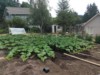 In the back left are 2 prizewinners pumpkins sharing a spot (thanks Glenna and Richmond Dave for the seeds) and to the right you can see the leading edge of the Wallace plant that has decided to kick into high gear.