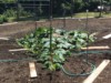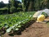 Always a nervous week in the growing season when it�s time to take the ends off the hoophouse, and ultimately remove the whole structure. It�s windy here every day on the tide changes and until the plants can set more roots along the vine, we have to use bamboo sticks to make sure the plants are cradled and safe from the swirling winds.