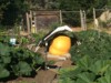 I�m not sure it�s worth keeping the main vine past the pumpkin, since I�d only be losing out on about 10-12 leaves. Time will tell but I bet I terminate themain past the fruit once I decide to put up a rain/watering protection hut.