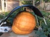 If they will both fit in the truck, I�d like to also bring this pumpkin to the Weighoff this year. This is our largest Prizewinner and the plant had 3 pumpkins on it. It tapes 103-76-73 for around 350 lbs. Both other pumpkin on the plant went around 260 lbs each.
