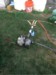 Another yard project! Made the post removable so we can put into a shady location if needed. 6 inch tubes in the holes, caps for when the posts are removed. Made the posts from a dead pine out back!
