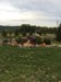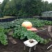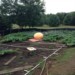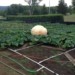 Overhead shot of patch. Pumpkins are normally covered with white sheets. Removed during watering.
