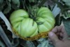 Believe or not, the largest I have going at this point is from last years small keeper from a 1.68 BZ that came from a nice ribbon stem when it was the next latest and greatest thing. Well, it's growing a nice tomato anyway on a round stem. From its first cool day in a long time to the next cool day, it went from hardly growing at all to +1.25" in a day. The temp really makes a difference. I put Sulphur powder on many of my tomatoes in spots where I worry about rot like the middle. I miss sometimes and it goes all over.