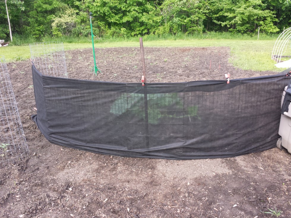 New wind break put up this evening on the 1498. Tried out some portable dog fencing which is easily moveable and bought a 4 ft. x 100 ft. Roll of weed barrier which is still breathable but will kill the brunt of any forceful gusts that may roll thru unexpectedly. Heck...the fence was 5 bucks at a yard sale and bought the roll of weed barrier at a discount store for 10 bucks.