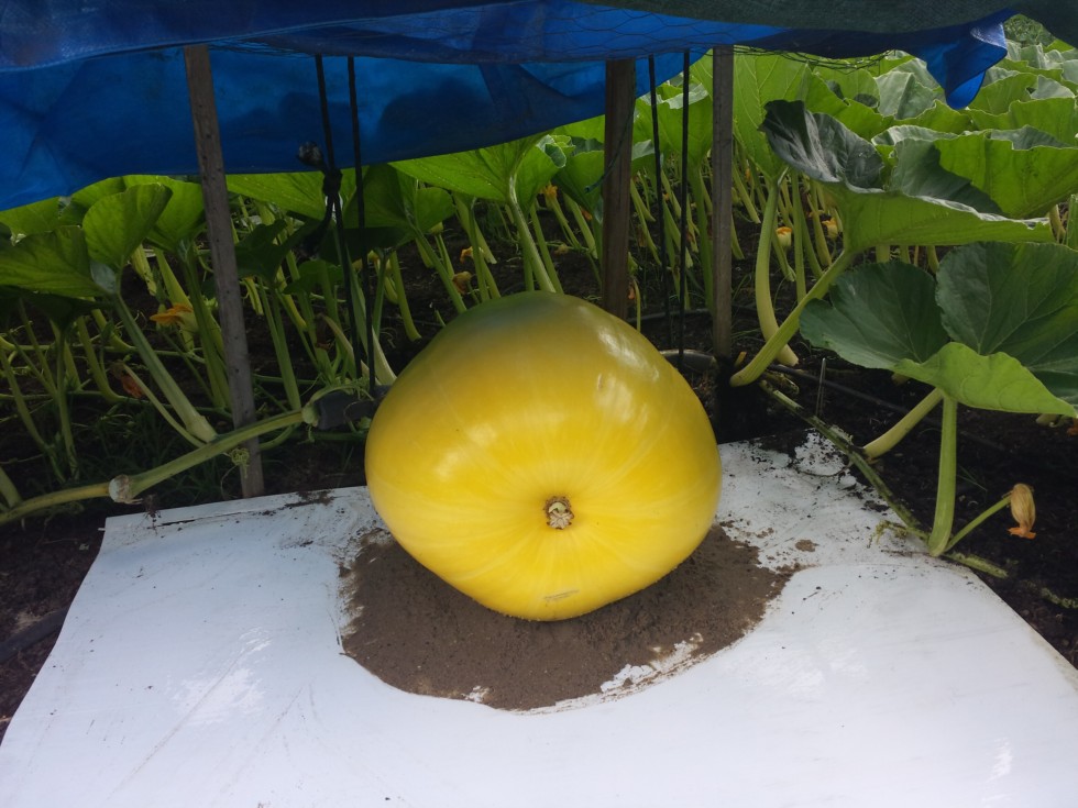 So far.. so good.. and fingers crossed with the 11 1/2 ft poll on the 1498. Got the white plastic sheet put under it today and a small pile of sand to allow for growth movement.****note to future self..put the plastic sheeting under the pumpkin BEFORE it gets too big to comfortably lift ya knucklehead!!!