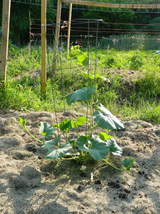 139.35 Ansems long gourd. The trellis has been expanded and we cut back to just 3 plants. We hope better air flow and a different fungicide will help prevent the anthracnose that wiped out the gourds last year. The gourds are on raised beds, 10' X 32' for 3 plants. They get rotated from one side to the other every year. This side was tomatoes, inoculated with WOW Pumpkin Pro last year. They were the biggest plants I have grown since I planted some climbing tomatoes when I was in high school, in the late 60's. I hope some of the micorrhizae carried over to this year with the fall rye cover crop.