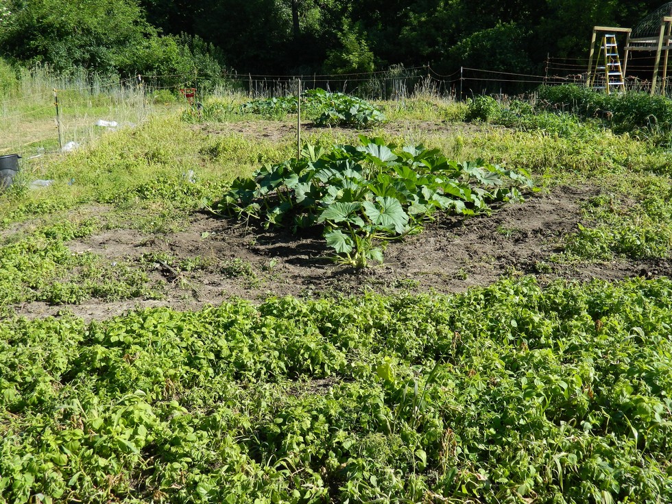 15818.5 Bryson looking good. Weeds dying off after glyphosate spray. I did hit one of the field pumpkins with just a little bit of spray drift. I hope it survives. I didn't want to use herbicide, but broken tiller gearbox changed that plan.