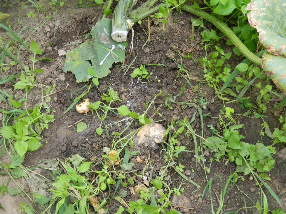The stump on the 962.5, just a bunch of ooze. The cut off main looks healthy, the rest of the plant didn't seem to suffer. Gained 86# last 4 days, est 354# at day 33. 65 days until Anamosa Pumpkinfest, 72 days to Pawnee City Harvest Bash so maybe it can still make a decent pumpkin.