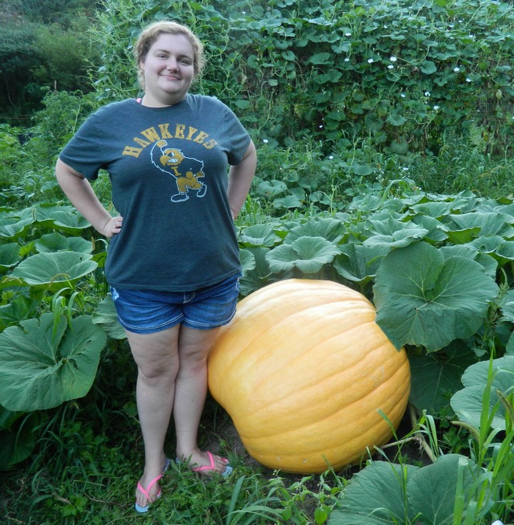 One of the 1047.5 pumpkins, around 300#. It isn't as old as the other pumpkins, but it is growing quickly. I like the shape and color.