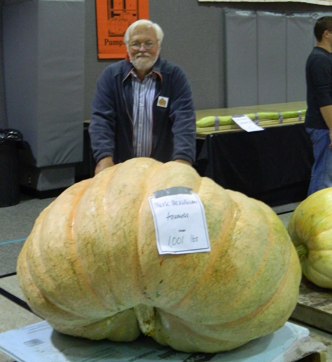 My pumpkin went lighter than I hoped, but it just barely broke the 1000 barrier. Not a personal best but my highest finish ever at Anamosa. 5th place really surprised me, but a lot of growers got totally wiped out by the weather. I just have to place one spot higher to get a ride on the parade float.