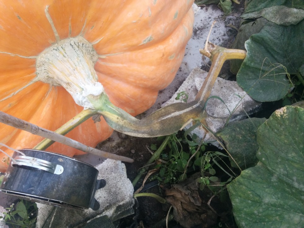 When the pumpkin was 5 DAP, the vine just before the stem started to split. OTT is 409' - 1456 lbs