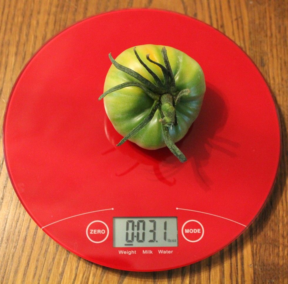 Here is my tomato for the winter grow effort. The 3.1 oz or 0.19 lb Spaziani. My opinion on growing tomatoes in the winter is different than when I started. Next year I will need more light and hopefully will break 1 lb!.