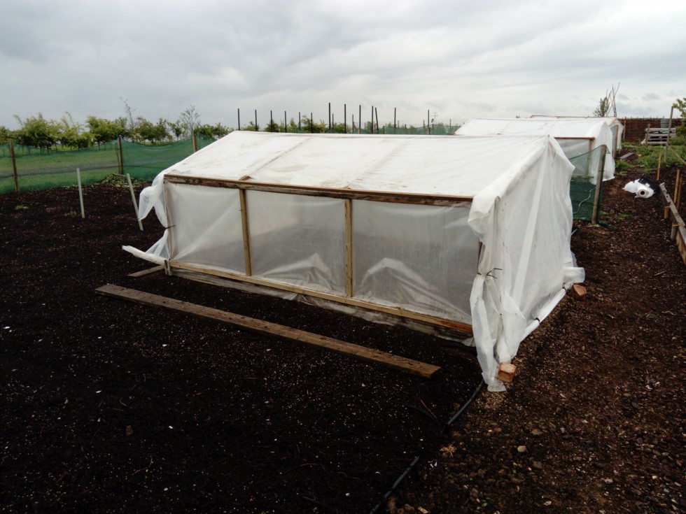 Put some sulphur chips down on the patch today to slowly bring the pH down as the tests came back a little high. Put some fleece over the tops of the cloches too, will experiment to see if this keeps the night time temps up as this is my main concern.