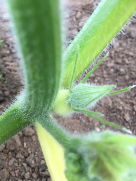 First little pumpkin. It's only at 6 feet on the main vine, so it's not really a contender, but I'm gonna pollinated anyway just in case.