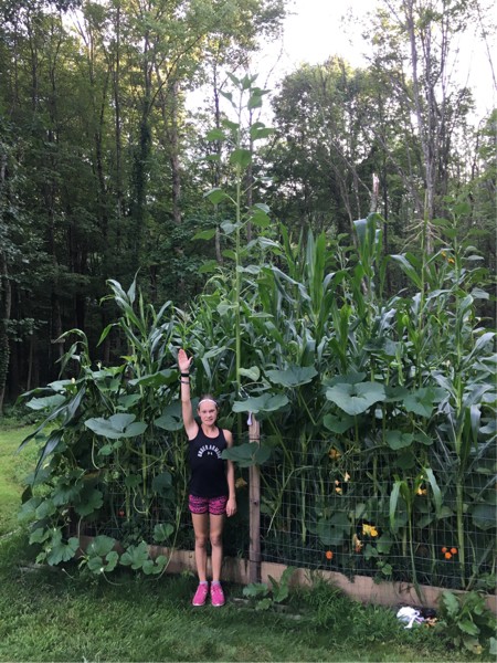 My daughter Nicole in comparison to a 13 foot tall sunflower.