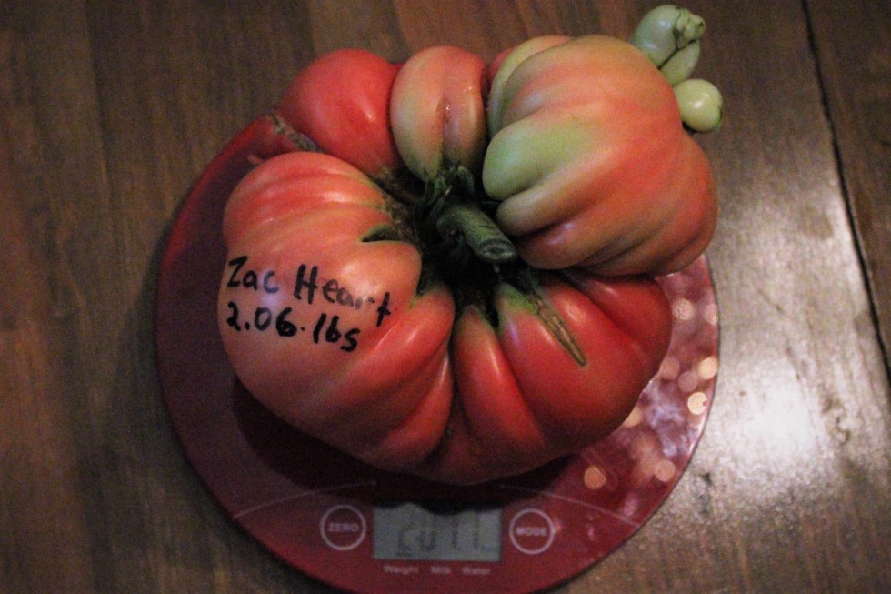 7.15 White BZ x 4.66 Spaziani Oxheart = 2.06 Zac Heart. My first cross with about 100 seeds. Not a big tomato by any means. Just pollinated a random 7.15 White with a random 4.66 Oxheart.
