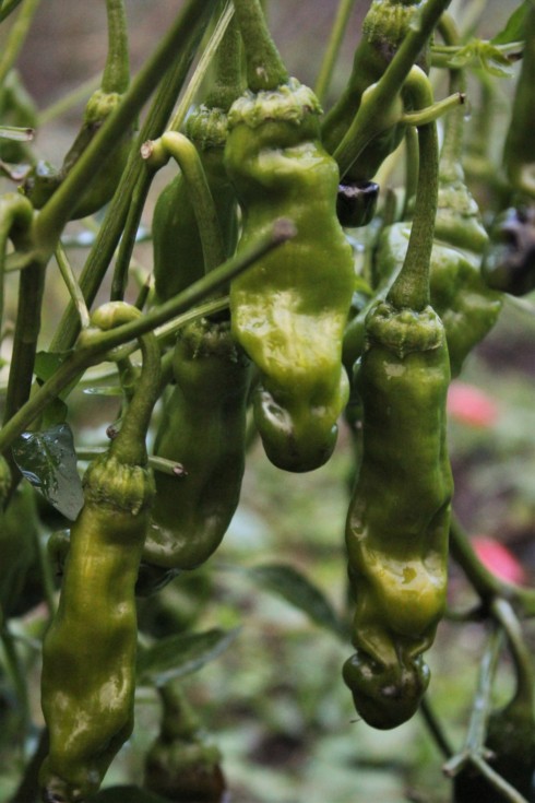 Peter peppers! It's not too late for another contest is it? Hey Porkchop, aren't you growing some of these? The deer ate all the leaves but left these peppers alone. They were startled by the sight.