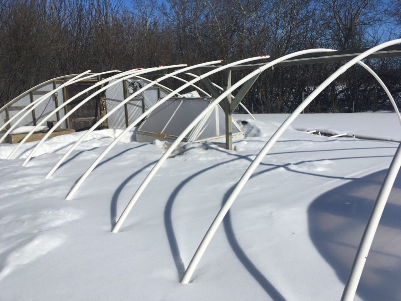 It�s slowly melting. Lots of work to do when the pipes can be removed after they melt out. All the vines remain yet too. I�m not going to kill myself growing this year. I�m going to relax and just do what I can.