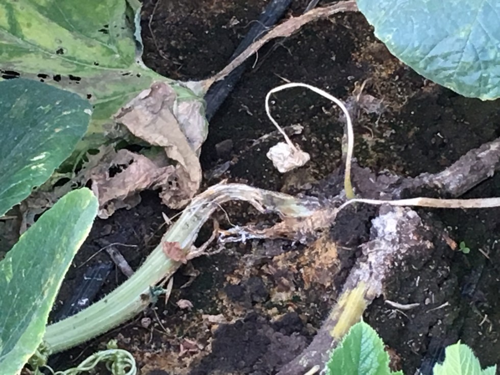 a photo of part of the disease attacking the stems of the leaves, these leaves were not old and it is happening all over the plant.