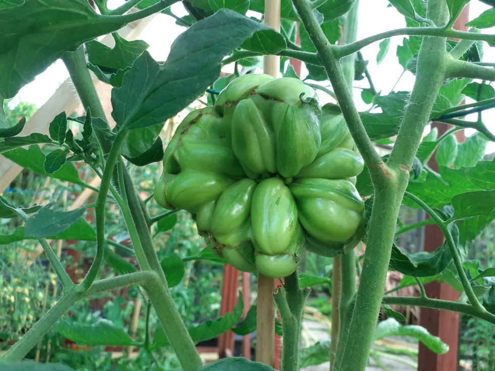 Giant tomatoes is another new venture this season. Growing 6.02 Doug Smith, although, having consulted the "bible" and other growers' diaries, I appear to be doing it all wrong! Seed sown 6th Feb, plants now around 4ft tall and largest fruit 4 in across. Also have a Mid-March sowing...not far behind, and a very late batch from rooted side shoots about 5 in tall.