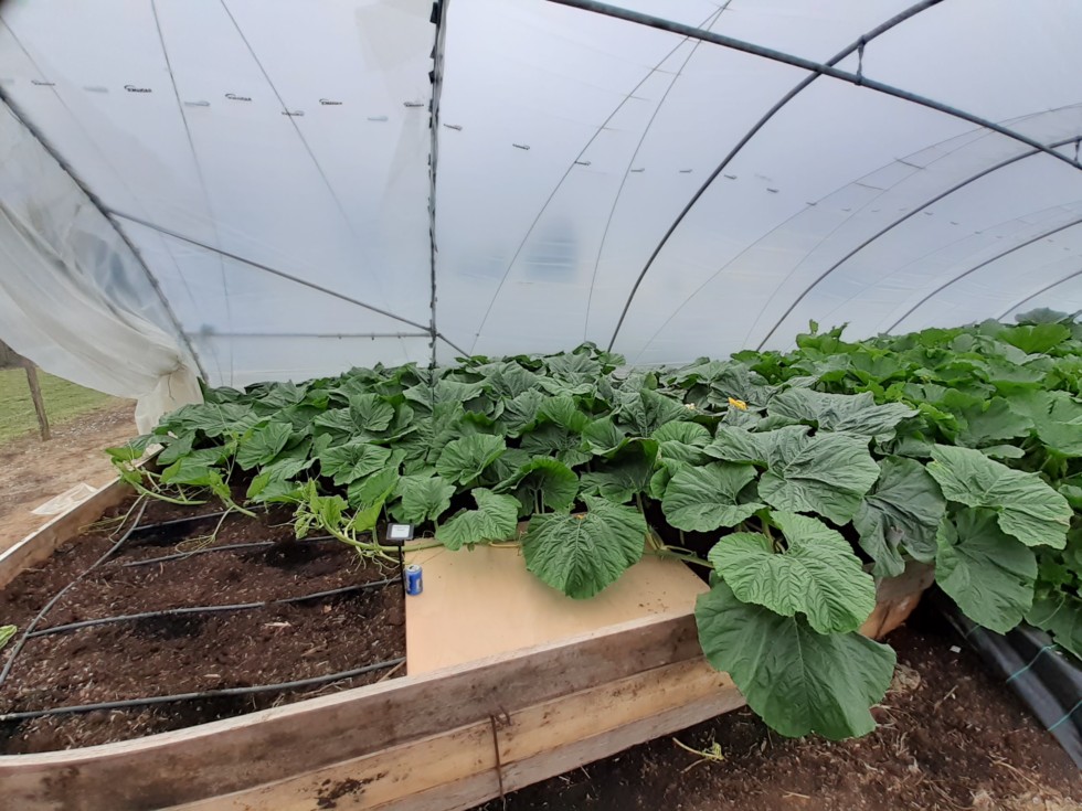 150 sq ft patch is about 90% full. Pollinated the 97.4 Ressel with 1501 Vander Wielen today. Rather annoyingly, the female flower is on the wrong side of the vine, but I don't want to wait for another (except as a back-up). Hope this one takes, otherwise I'll be even further behind!