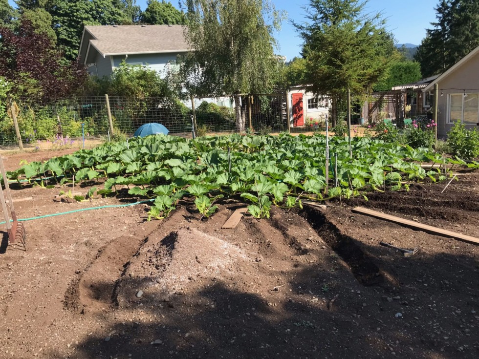 Day 9 for the Daletas pumpkin, umbrella comes down and plywood and mill fabric get installed today. I usually like to have all the secondaries terminated at 15 feet bu also like to time it correctly and be doing the vine terminating between day 20-30. This year, this plant is larger than usual and pollination is further out on the main vine.
