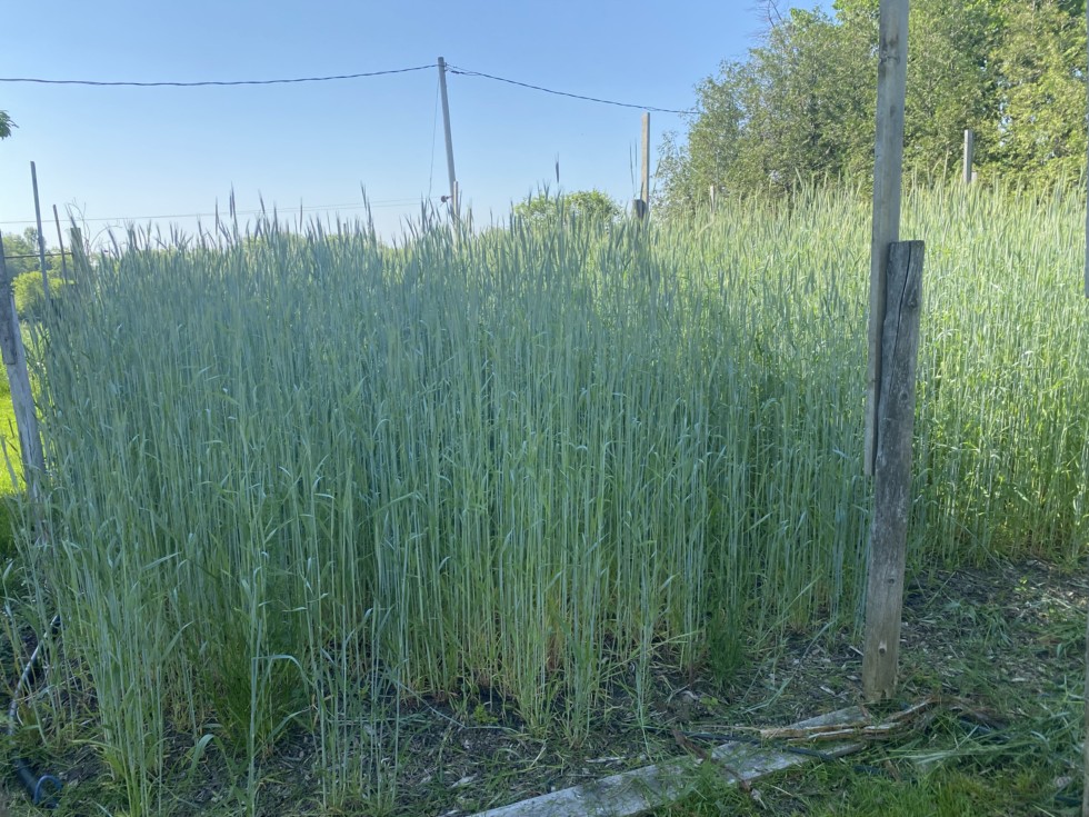 The fall rye is ready to cut down. We will just cut the top off so it does not go to seed as it would take too much water to get the new cover crop started