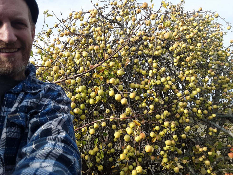 A very productive apple tree. Hasn't dropped its fruit yet. I dont know what factors might trigger early vs late fruit drop. Everything that "is genetic" is probably also controlled by the environment.