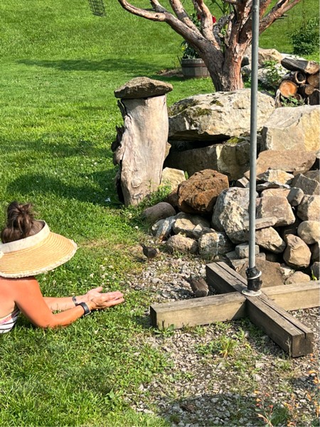 We made friends with a pair of mourning doves that were born right outside our kitchen door.AND the missus had to admit that my "stupid" idea of whistling in their face every morning when they first hatched was actually a good idea.they brought babies back this year.