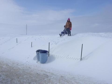 This snow drift covers my garden completly. Three days ago, I was working manure into the soil. It will be a while before I can even see the soil now.