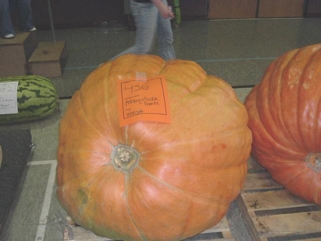 Young growers with a fine bright orange pumpkin.