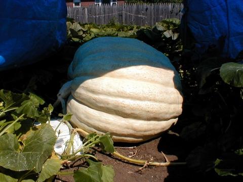This is the second largest of three pumpkins I am currently supporting in my garden. I cut off all the other pumpkins as they start to grow.