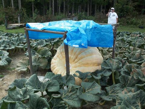 Here is another shot of the pumpkin on the 910 plant. John is in the background with his digital video camera.