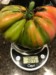 On to the scale she goes. I�m pleased with that one. It�s a good reminder to not give up. I had a 3 pound tomato on that plant early on. I�m glad I let the late season mega grow out.