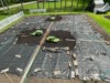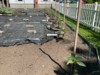 We finished placing out the weed block. Hard to figure out how to place it to maximize it and save our backs keeping the weeds out until our plants grow out to fill their space.