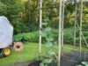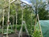 We put cross braces on the long gourd trellises with my engineering son and it really helped to stabilize them. I cleaned all of the dead vines off and we are ready to rock and roll. We also put the mesh electric fence around the patch so we can keep the hoop open on warm nights.