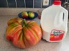 Better size comparison for the 7.28 pound tomato.
