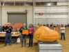 Here we are with our club member witnesses. Final measurements were 28.25 x 23.75 x 23.5 for a total of 15,767. So she was a bit light, just below a multiplier of .00051. Not sure why but all of our tomatoes this year were at the .00051. Next year we need to figure out how to get a bit more density.