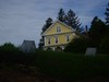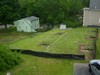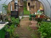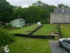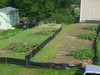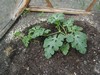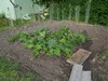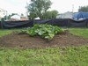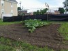 This is the garden as seen from my neighbors, with The Bates Motel in background... If you squint really hard and use a lot of imagination you can see a little plant in cold frame...