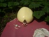 Don't be mad at it Susie.. It's the biggest melon ever grown in New England.