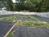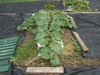 The plants should have filled just about the entire area by now, but the squirrel pruning has prevented this from happening. This shows how I have the pos./neg. electric netting set up in my patch. The actual installation process was fairly easy, even though this was my first time doing it. I will note that while the spikes given were very helpful, I did need to add some additional supports to prevent sagging. You can NOT use metal or wood; I used PVC conduit pipe cut into about 4 ft. lengths and used a tie wrap to help support the netting where needed.