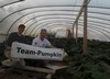 The traveling Team-Pumpkin sign continues its random appearances. Here I am at Chad New�s patch. The screen house has multiple functions, as it provides a barrier to the insects, protects from hail, and also increases the humidity, which in Colorado is a good thing.