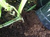 After far from perfect rooting from the vines we have come up with a new plan for this year. First of all we felt that although we were burying the vines, light was still getting to the nodes and inhibiting the new roots. The second thing we felt was that the material covering the vine was getting too dry before the root had developed. Third,was why not put some rooting hormone on the node as well.