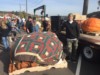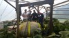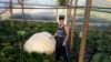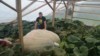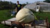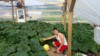 Getting the strap around the pumpkin, we have a winch on the outside of the greenhouse to pull the pumpkin.