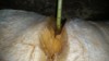 Update on the 2096 Meier, Ott is 447 inches, I have about 40 days left to go before stillwater if that is where it'll go, not sure yet, um still growing about 10-15 pounds a day, plant looks healthy no signs of rot, and the pumpkin is rock solid, will be excited to weigh this fruit if it makes it, the picture shows the blossom which rotted off around day 20.