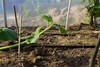 I'm growing 3 giant runner bean plants again this year. This one is in the same place as when I grew my 31 inch runner bean several years ago. Upto the crop bars of the polytunnel with the other 2 lagging.
