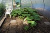The main is swerving to the right with the aim to have pumpkin in top right then veer back to the left to hopefully run the main for another 8ft inside the polytunnel in case the first pollination does not set. However, I think it will be far too late to wait for another female to appear on the main.