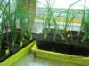 Started to move Onions into 5 inch pots, still under 24hr lighting, will be moving these into the heated greenhouse in a few days under 10.5 hr. lights during the day.