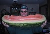 Watermelon bucket for mixing me magic hydros at seedling stage to 4 or 5 leaf stage.